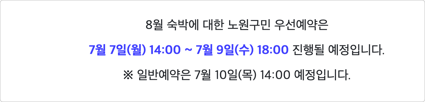 - 8월 일반예약: 7월 10일 오후 14:00 시