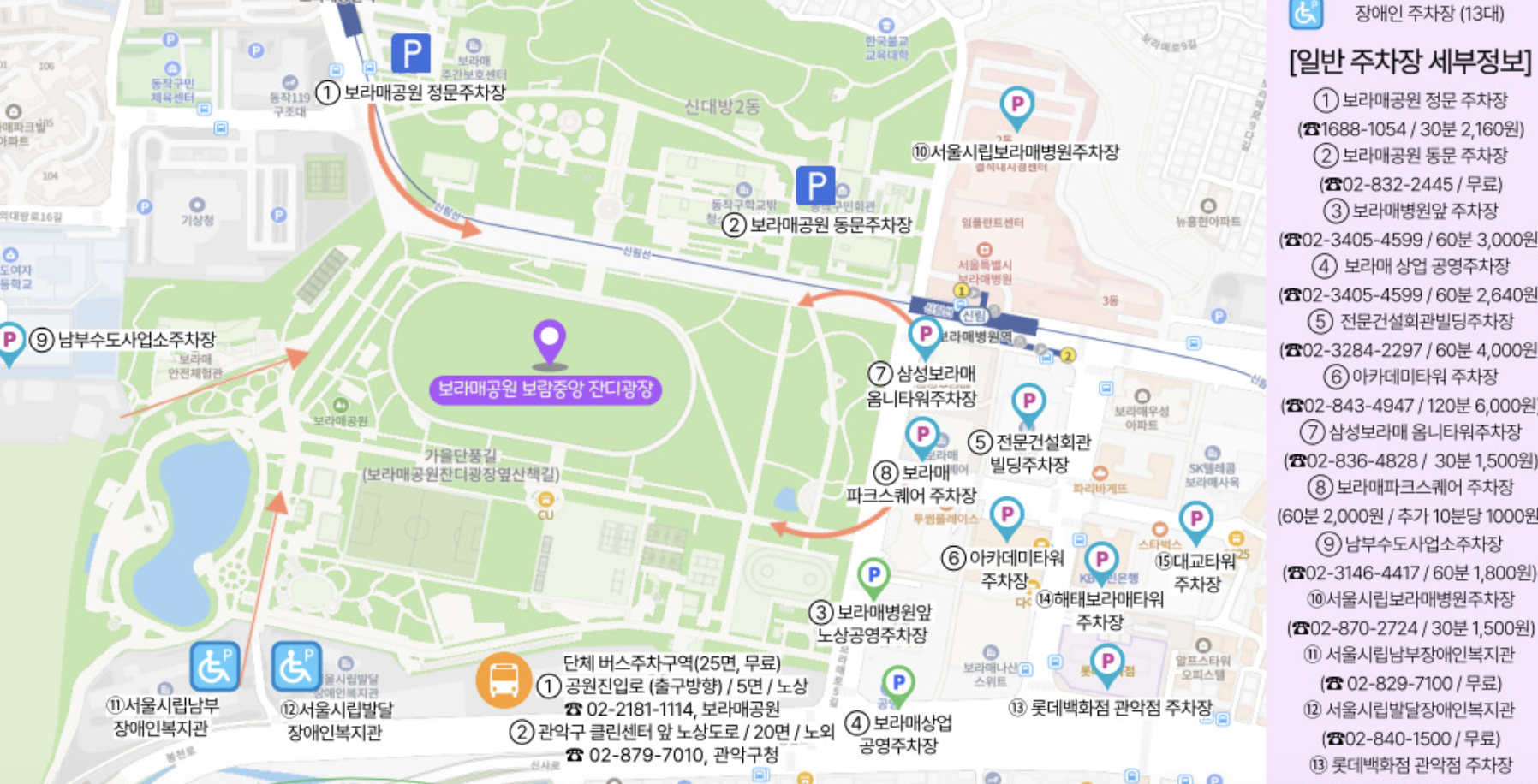그외 보라매 공원 부근 유료주차장을 이용하시면 됩니다.