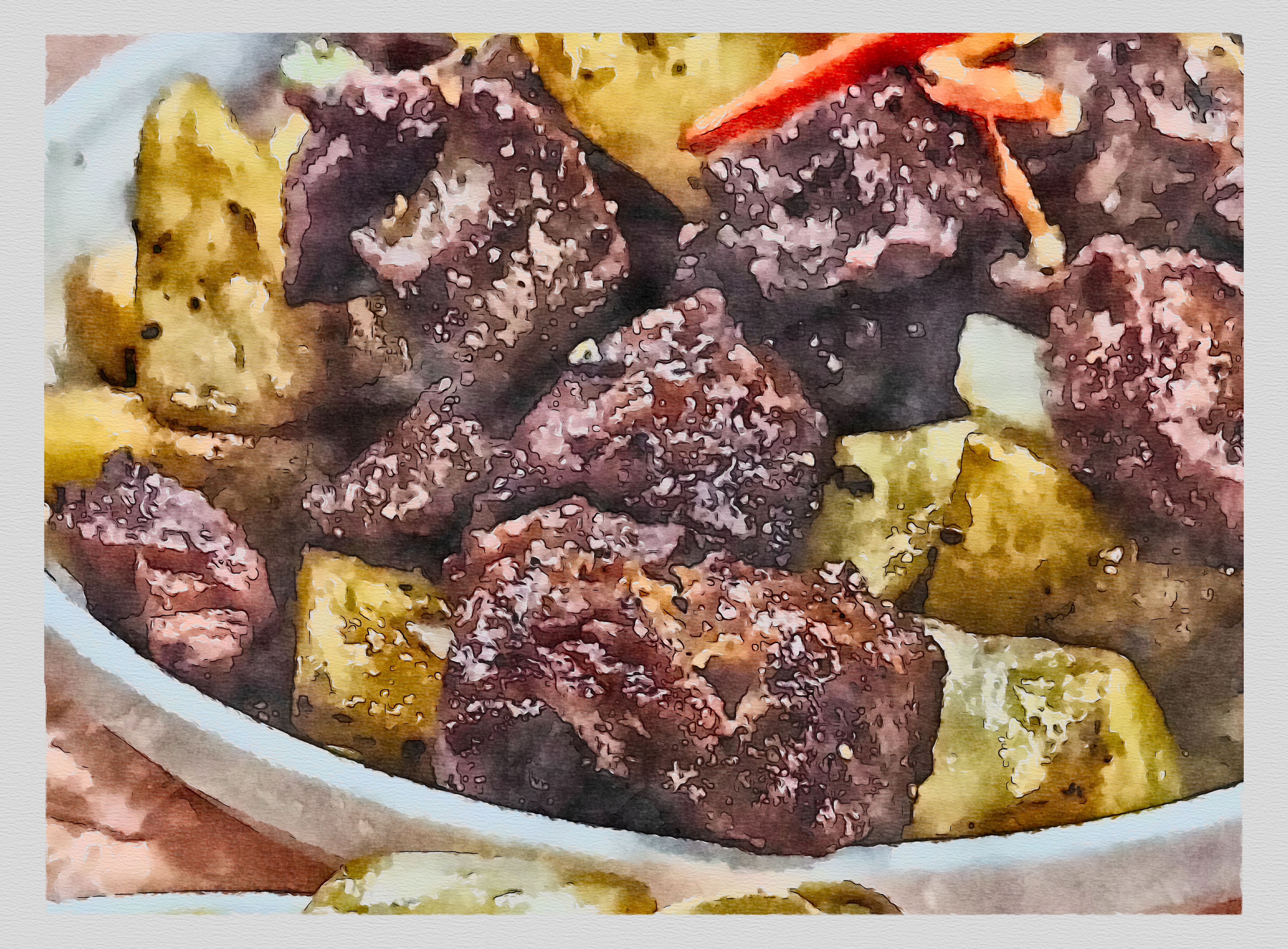 특히 소고기는 안심 부위를 사용해서 그런지 정말 부드럽고 담백해요. 기름지지도 않고, 자극적이지도 않은데 묘하게 중독성 있어요. 감자는 겉은 바삭, 안은 보들한 식감으로 마치 감자튀김과 찜감자의 매력을 동시에 품고 있는 느낌이랄까요?