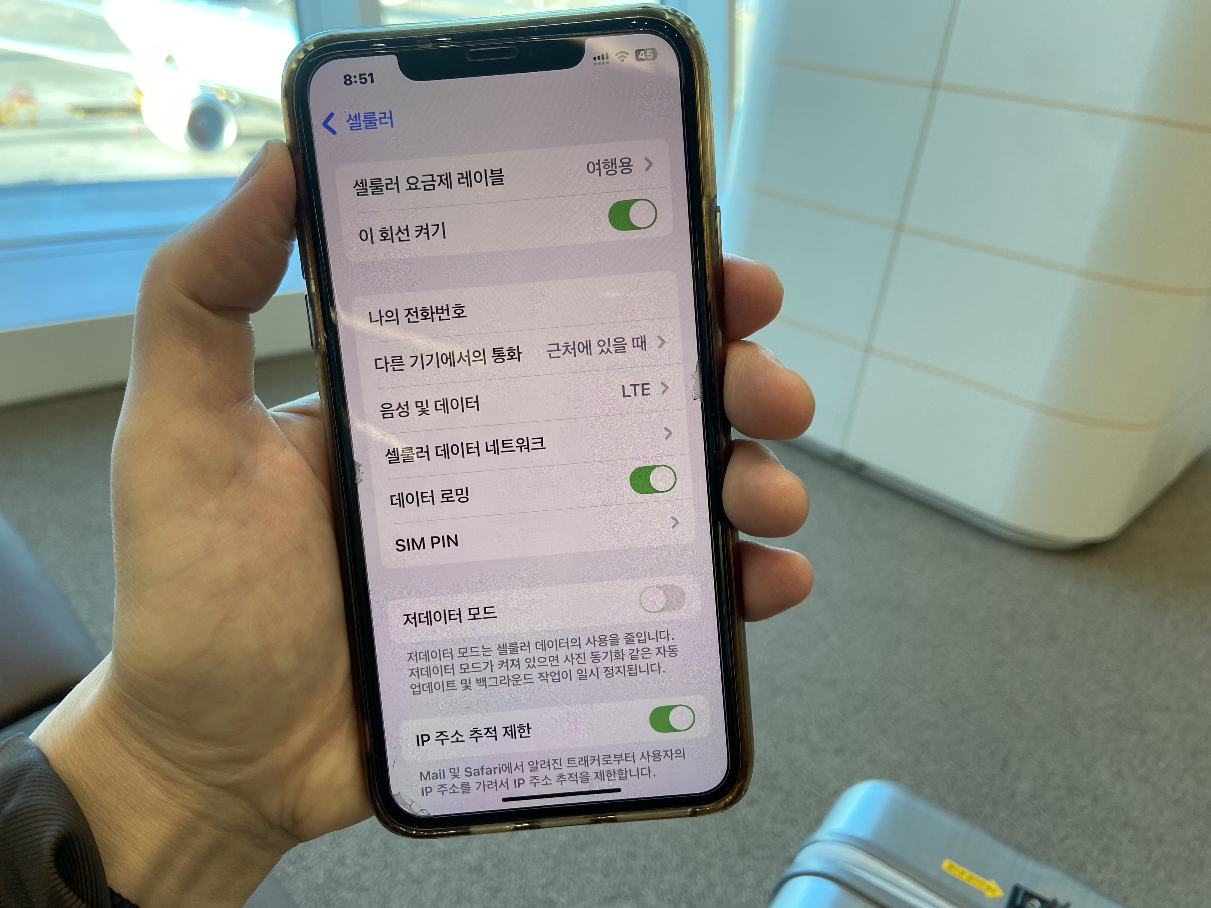 - 셀룰러 데이터 → ‘여행용’으로 변경