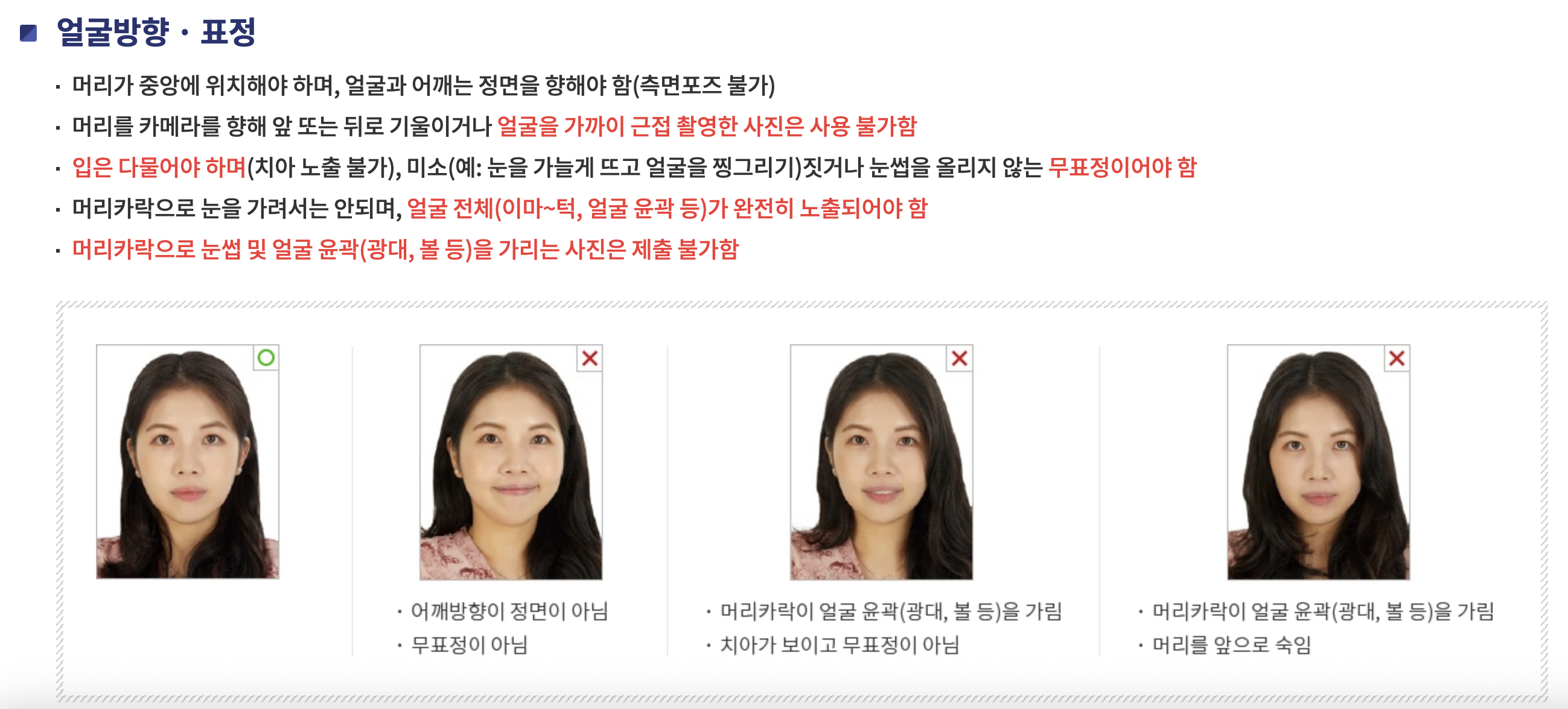 - 무표정, 정면 응시, 입 다물기 ➝ 이 세 가지는 절대 기준이에요.