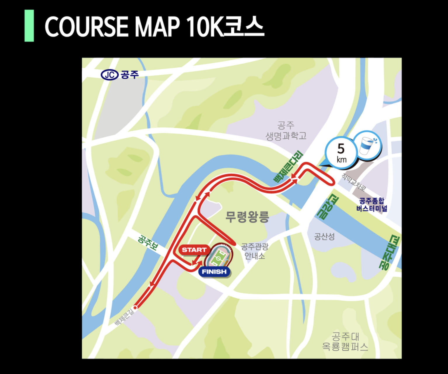 작년 공주백제마라톤 2025 , 10 km 코스를 살펴보겠습니다.
