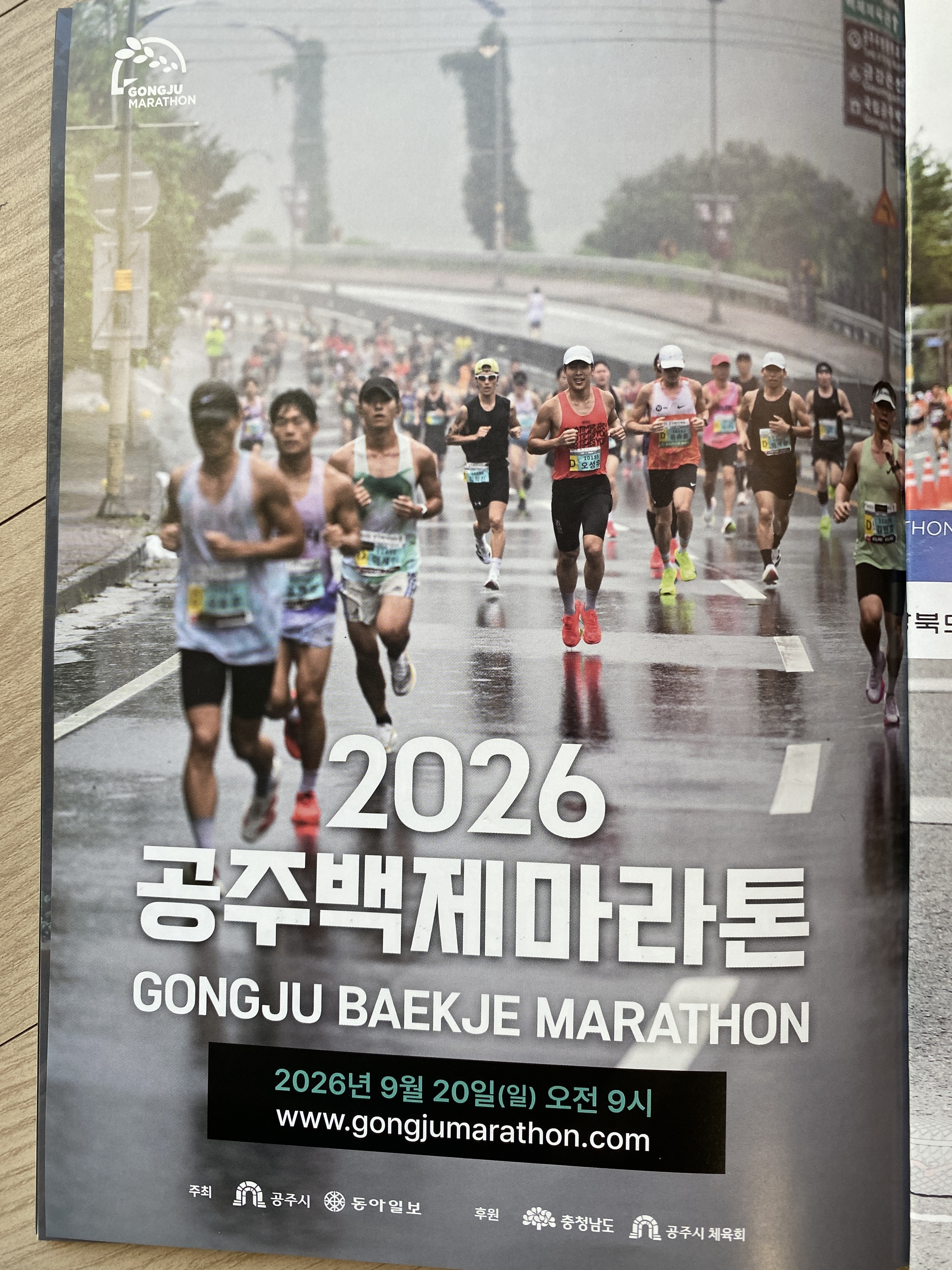 공주백제마라톤 2026 을 검색해보면, 작년 2025년 마라톤 밖에 나오지 않습니다. 최근 동아마라톤 2026 참가자들에게 배포된 책자를 보면 공주백제마라톤 2026 개최 날짜가 작성된 포스터가 보입니다.
